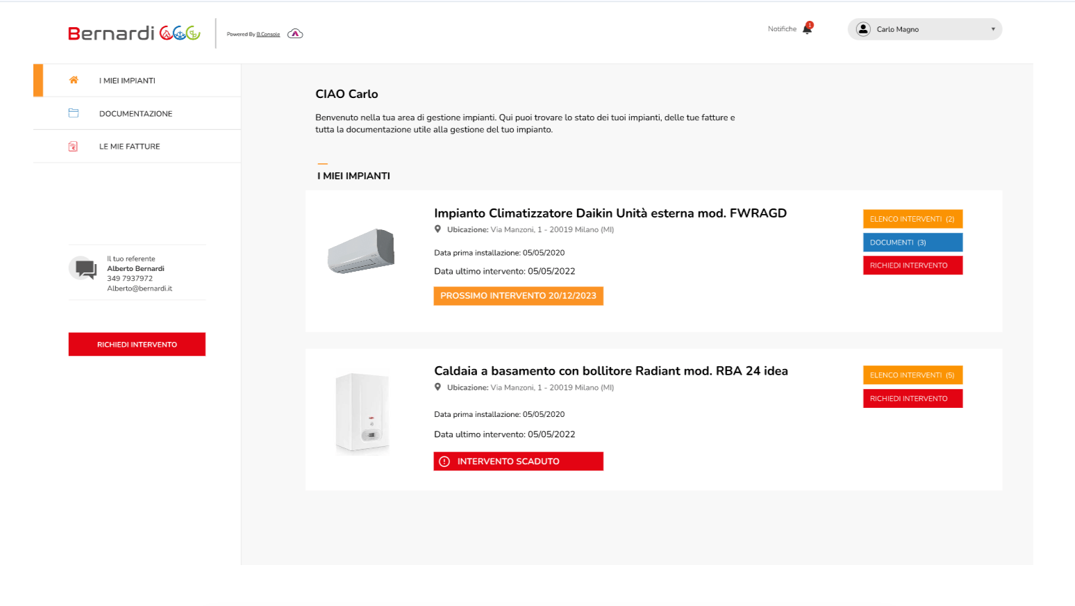 - Ogni cliente ha una propria area riservata dove visualizzare impianti, storico interventi e documentazione.