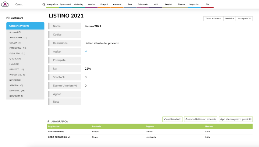 - Gestione delle provvigioni per prodotto o categoria