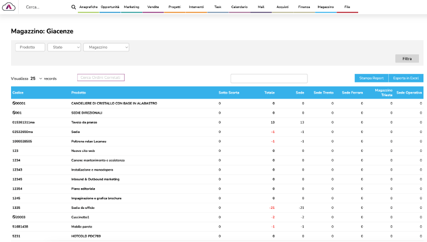 - Giacenze aggiornate per singola sede