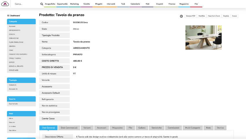 Permette un'avanzata gestione di prodotti o servizi e la loro classificazione.