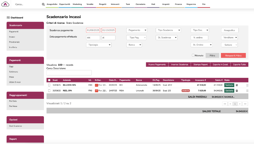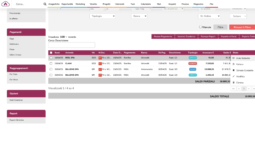 Lo scadenziario di B.Console offre una visione immediata e aggiornata della situazione finanziaria, aiutando la direzione a pianificare al meglio le attività.