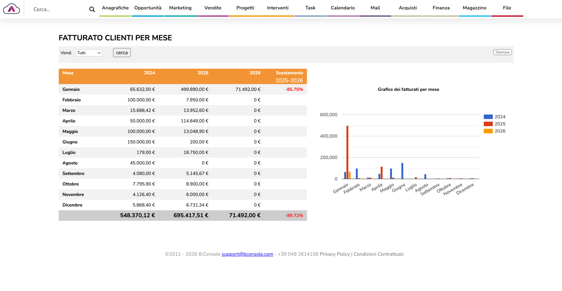 Dashboard direzionale con KPI finanziari real-time e report personalizzabili per banche, CDA e revisori. Tutto esportabile con un click.