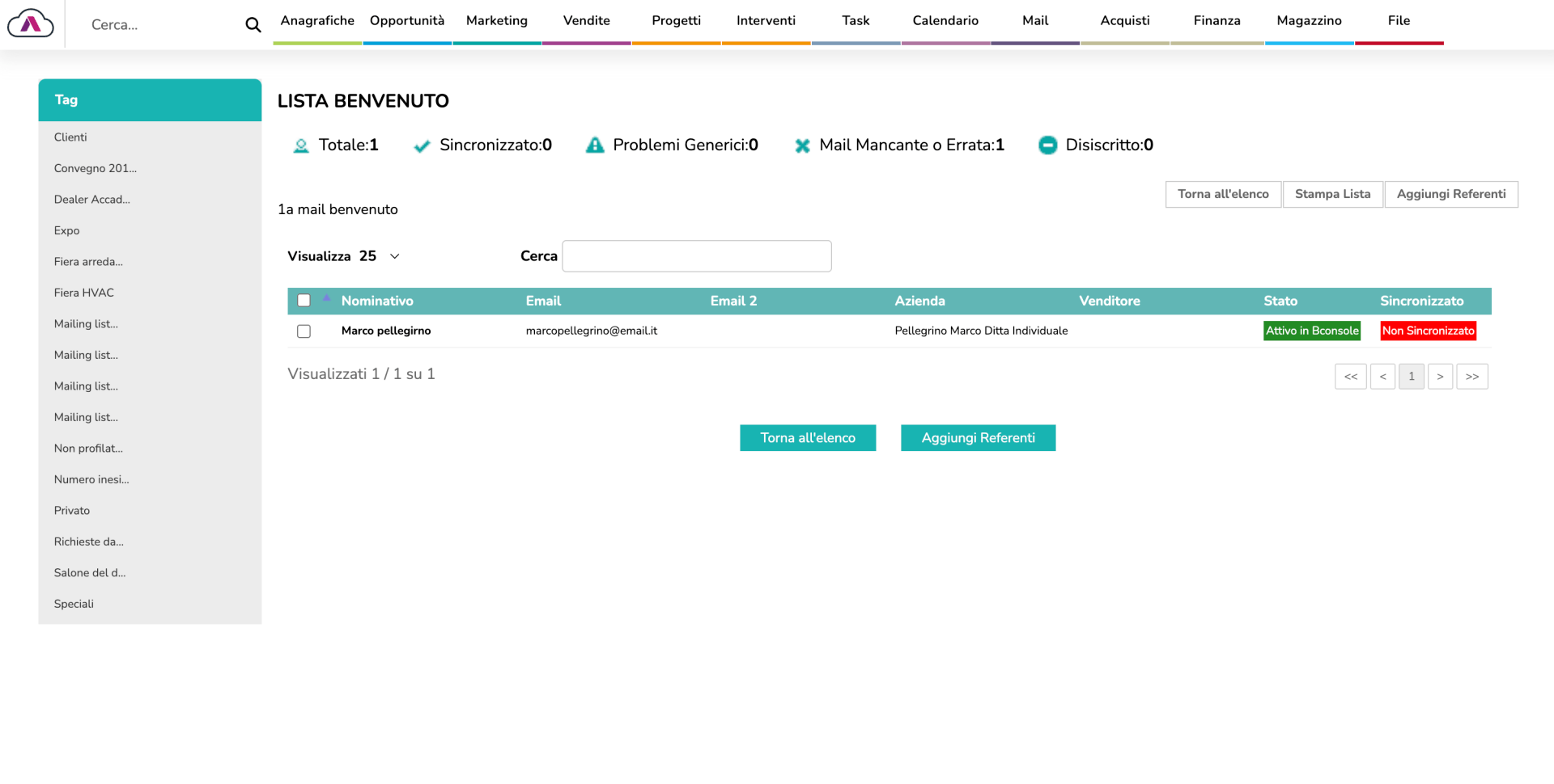 Il modulo Mail Marketing porta la potenza dell'email automation dentro il tuo CRM. Niente più export/import tra sistemi: la segmentazione usa direttamente i dati delle anagrafiche, delle opportunità, degli acquisti. Le automazioni trigger partono in automatico: email di benvenuto, follow-up dopo un preventivo, riattivazione clienti dormienti. Tutto tracciato, tutto misurabile.