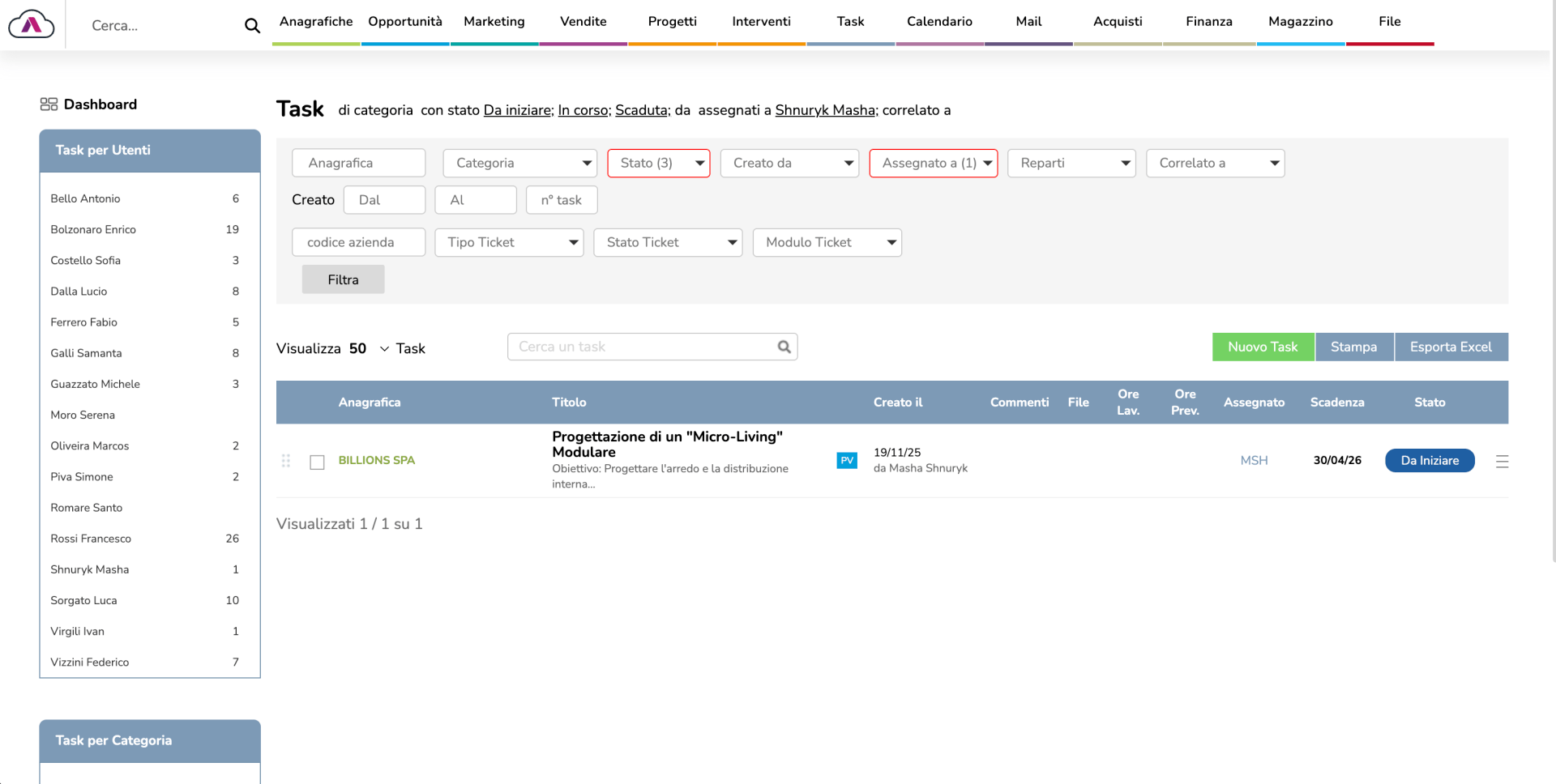 Task collegati a lead, opportunità e clienti per tracciabilità completa