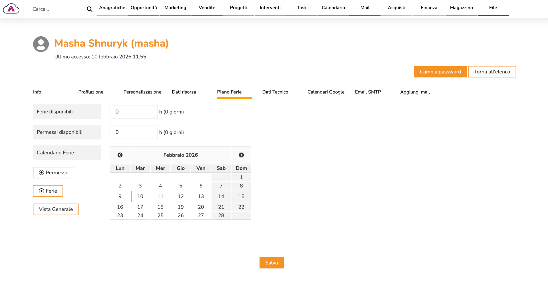 Conteggio automatico giorni residui: monte ore ferie/permessi consumate vs disponibili