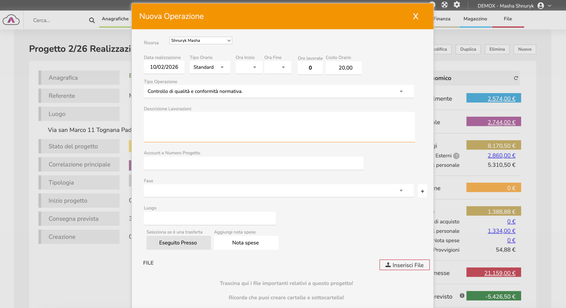 Registrazione ore semplice e veloce. Ogni risorsa segna cosa ha fatto, su quale progetto. Costi real-time, margini sempre aggiornati.